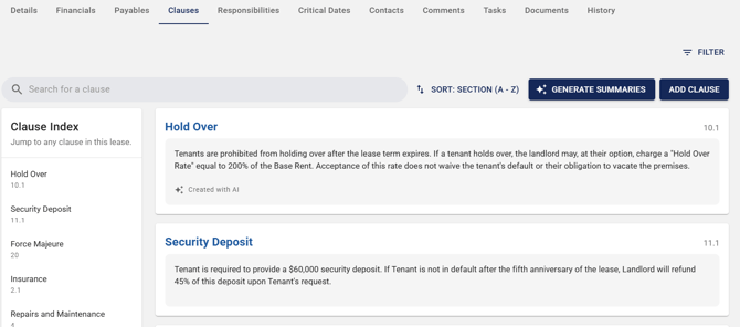 Step 1: Open the Lease and Navigate to the Clauses Tab