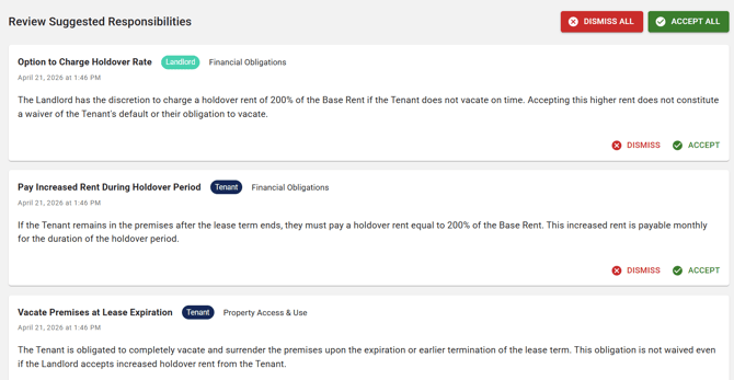 No. AI will propose as many landlord and tenant responsibilities as it identifies in the clause text. You choose which ones to accept.