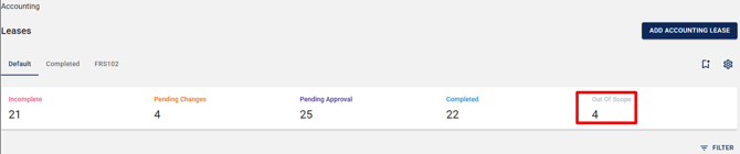 - Out of Scope leases are excluded from the Accounting Lease Index and all reports by default.