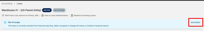 - On the lease page, click Recognize.