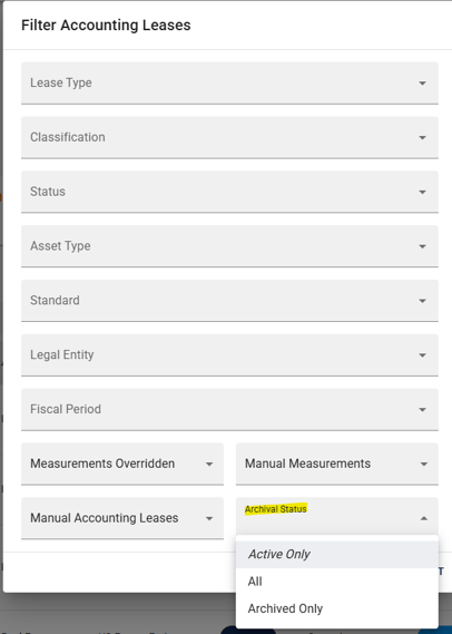 - or the Archival Status filter (for Expired leases).
